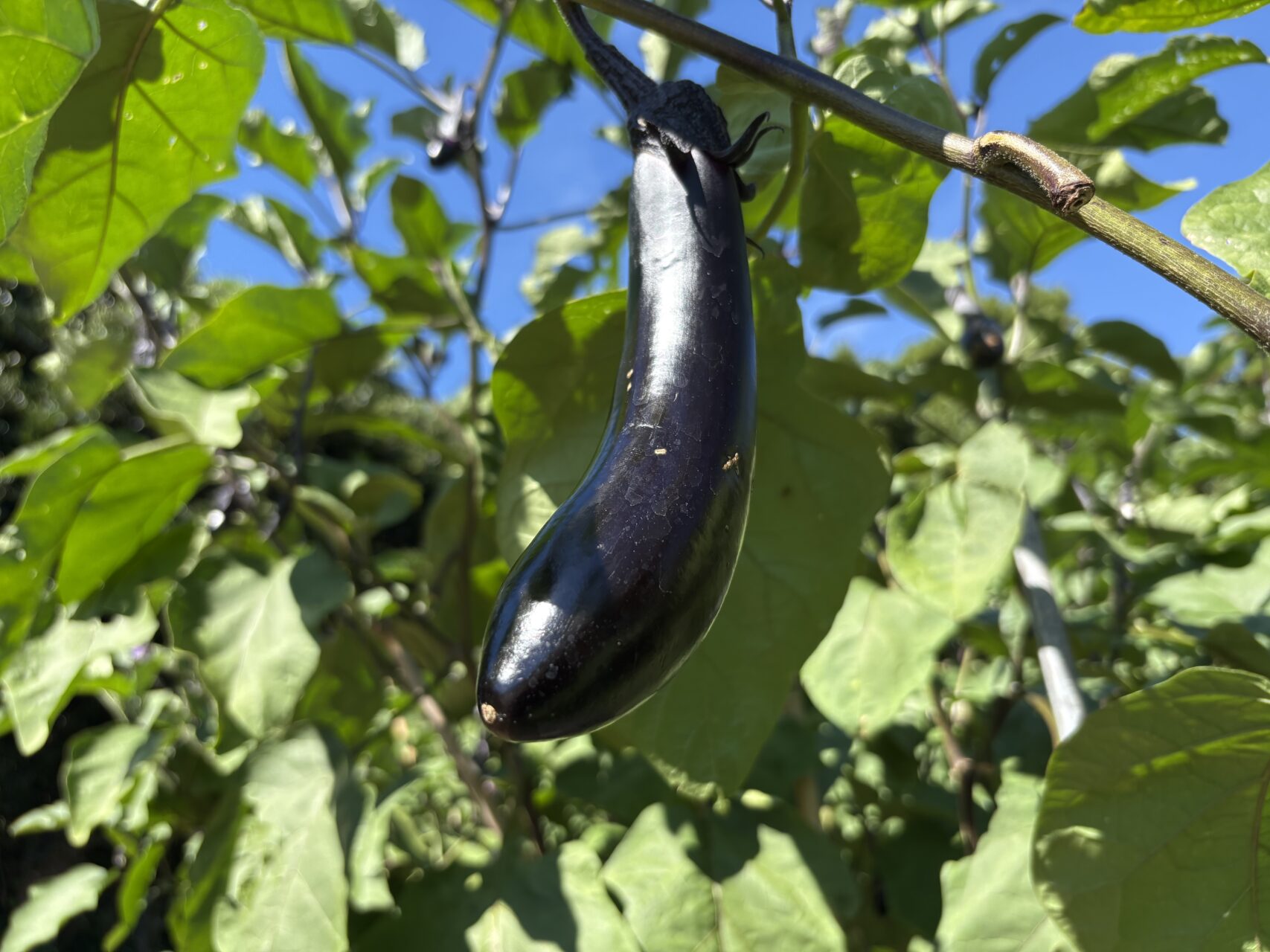 宇久宝島 土壌に恵まれ この夏も ナスがあちこちで育っています🍆🍆ナスのミートソースパスタ 冷や奴に茹でたナスを添え酢みそで どうぞ😋😋😋